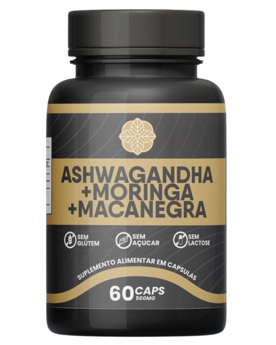 Energia constante (sem pico e queda) Maca dá energia; Moringa sustenta; Ashwagandha evita desgaste. Ashwagandha Auxilia no controle do estresse, melhora o sono e promove equilíbrio emocional. Moringa Rica em vitaminas e minerais, fortalece a imunidade e nutre o organismo.